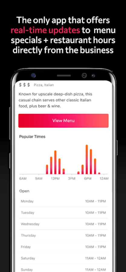 PhoneEatsFirst gives you all the tools you need in one, easy-to-use app: the ability to instantly update business hours, add menu specials directly, and respond to customer reviews without the annoying lag in verification required by other platforms.