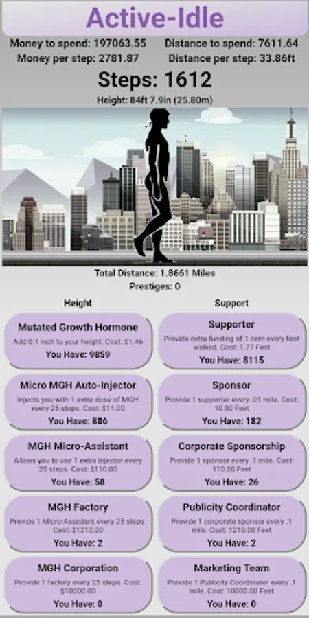 An idle clicker game where you continuously grow to overtake the city. Click your character to walk faster.