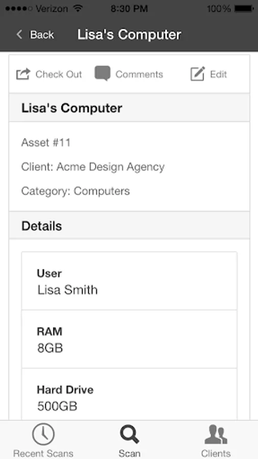 Our app allows you to view your assets from wherever you are. You can edit asset details, make new assets, and check your assets in and out.