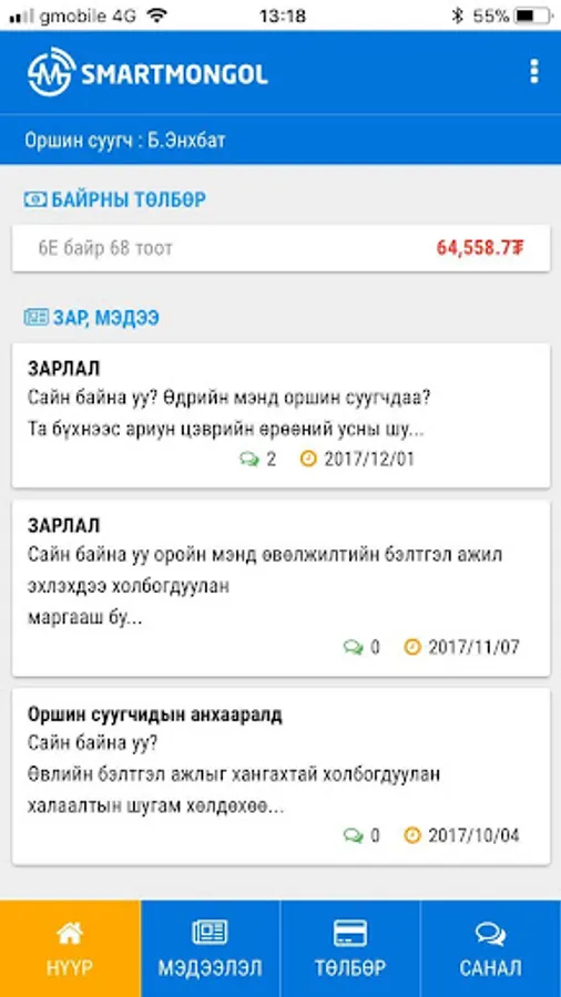 Бид Монгол хүний амьдрах орчныг таатай, тухтай болгох, олон төрлийн үйлчилгээг нэг сувгаар хүртэх боломжийг бий болгохыг зорьж, Ухаалаг Монгол цогц системийг хөгжүүлж байна. Энэхүү системийг ашигласнаар оршин суугчид орон сууцны төлбөр, засвар үйлчилгээ, санал гомдол шуурхай шийдвэрлэнэ.