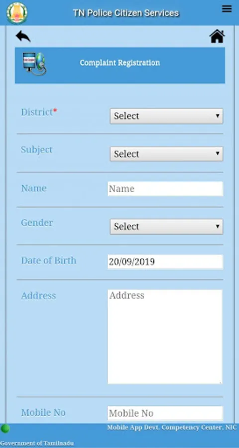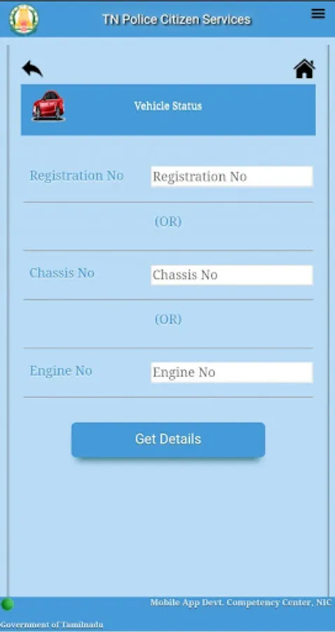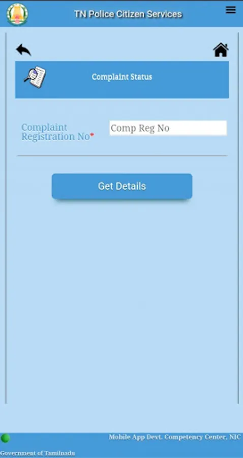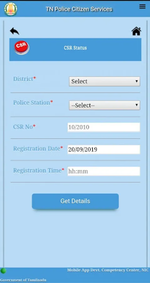 The citizen can run the application remotely from anywhere, any time using their Android mobile with a working network connectivity (data / wi-fi connection). The Mobile can be used for registering complaints online and also to know the status of the registered complaints at any point of time by providing required information. The status of the FIR and CSR can also be monitored using this Mobile App which is returned from CCTNS Back end system. Citizen can also find out whether the vehicle is a stolen vehicle or involved in any crime.