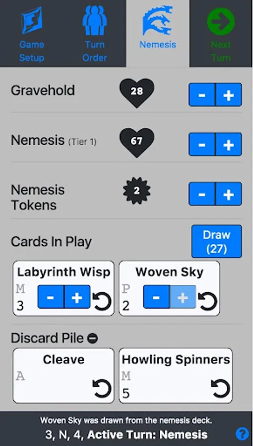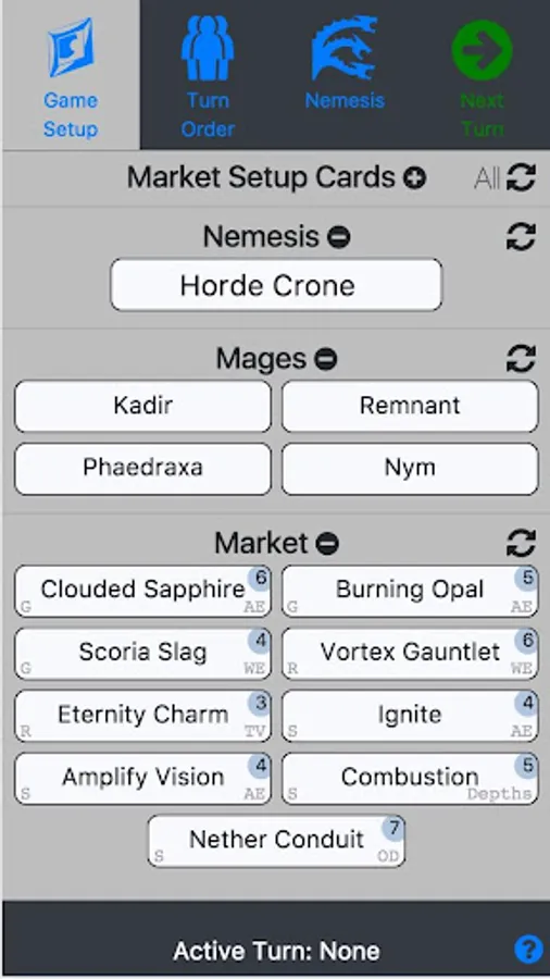 Aeon's End Assistant helps keep track of important information in Aeon's End, including starting supplies, turn order, nemesis cards, etc.