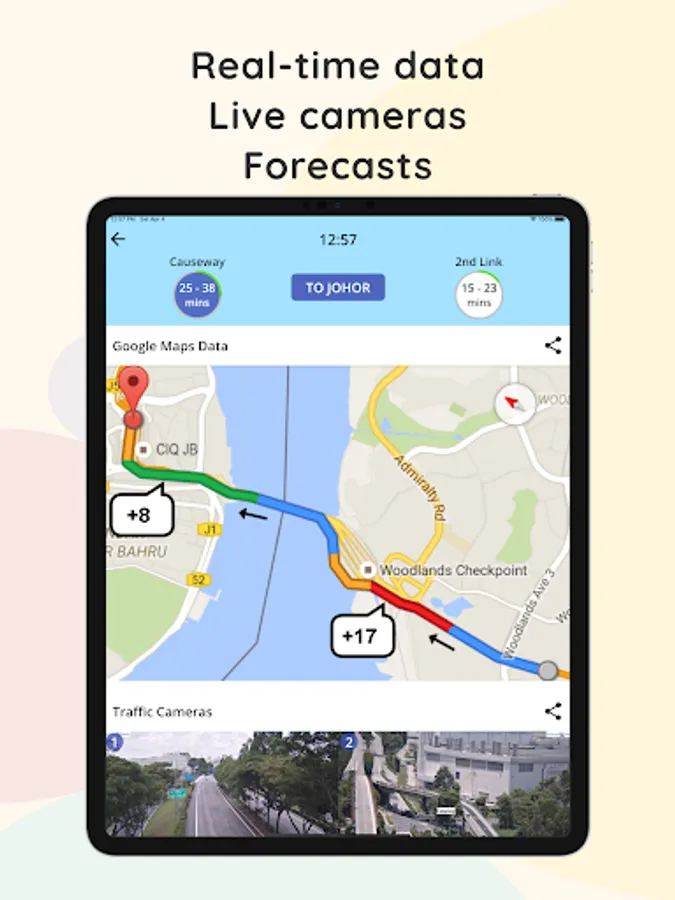 1. Real-time estimates of time to clear the causeway or 2nd link from Google Maps