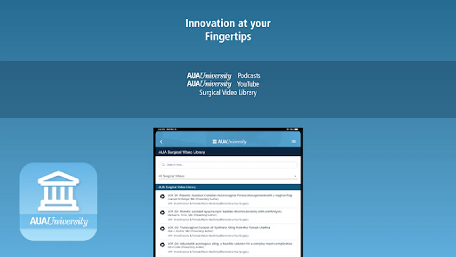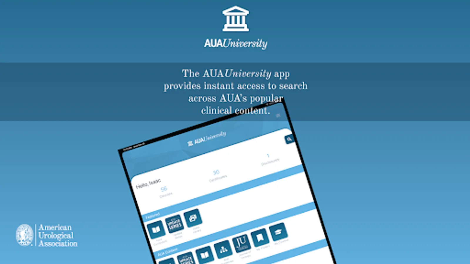 The AUAUniversity app provides instant access to search across AUA’s popular clinical content.