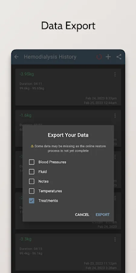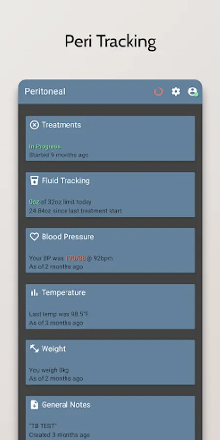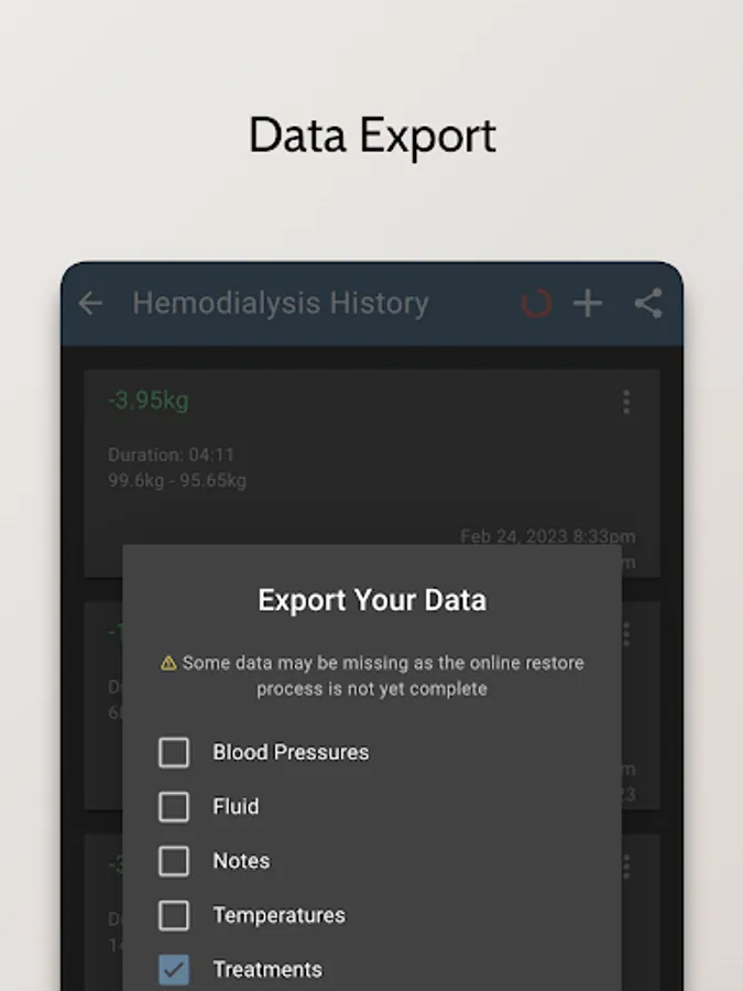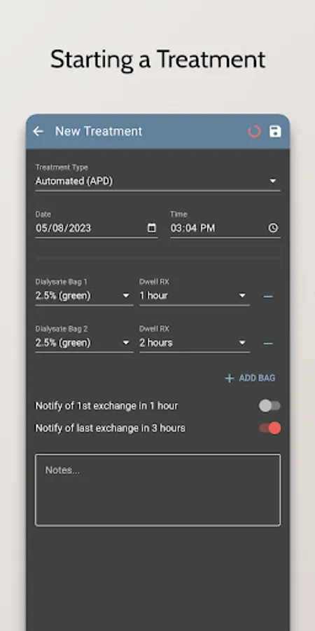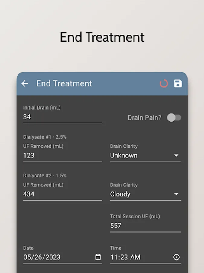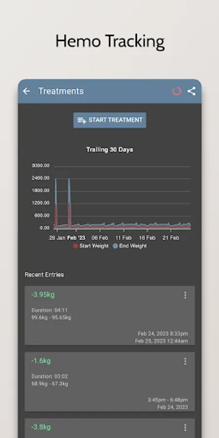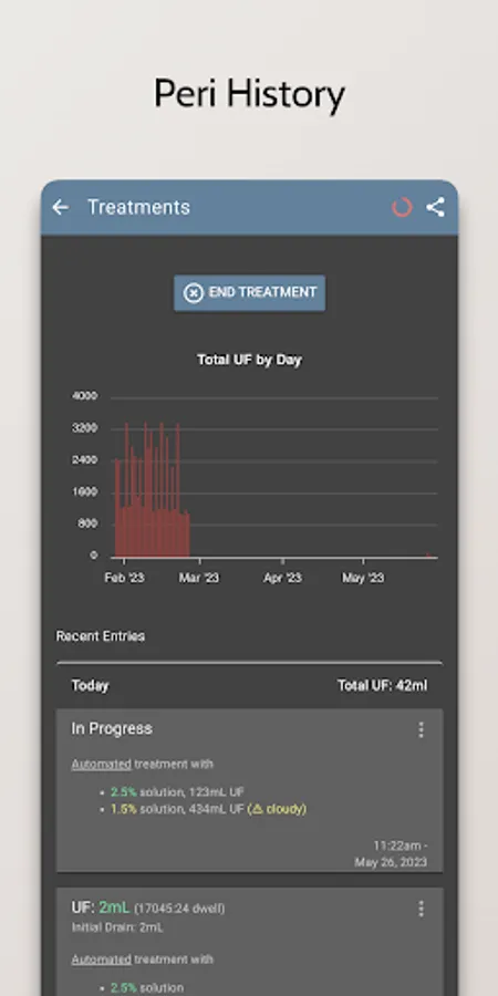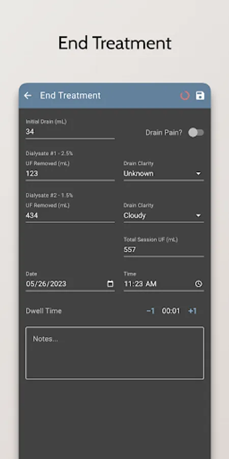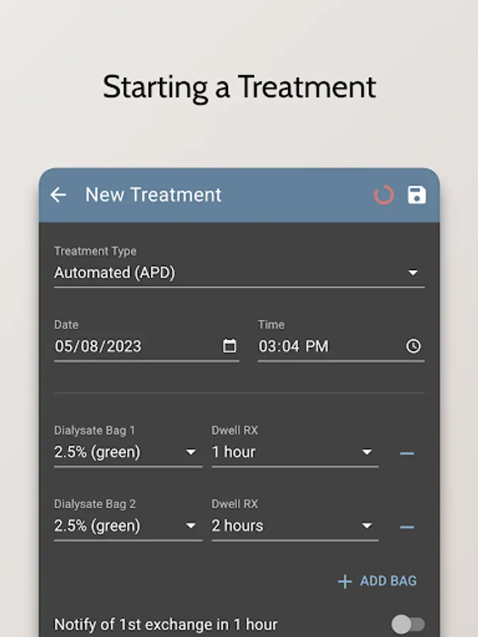 - Record and track your dialysis treatments, including the type of treatment, the duration, and any additional notes