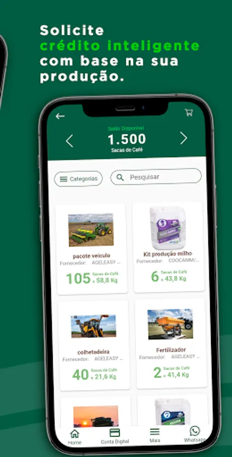 This operation is made from the deposit or settlement of agricultural production, and we direct the credits of these operations to an electronic wallet called E-ctare Pay.
