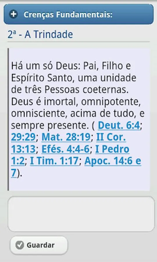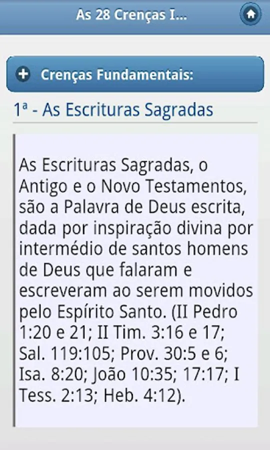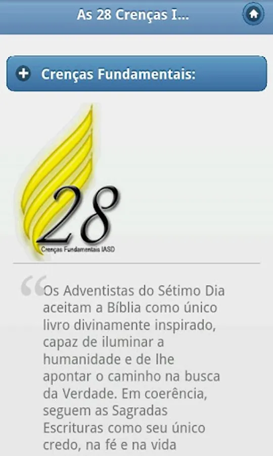 The 28 Fundamental Beliefs of Seventh-day Adventist Church, presented in summary. It's just that the main idea and is accompanied by scriptural references in which beliefs are based.