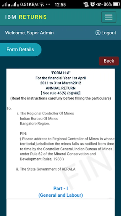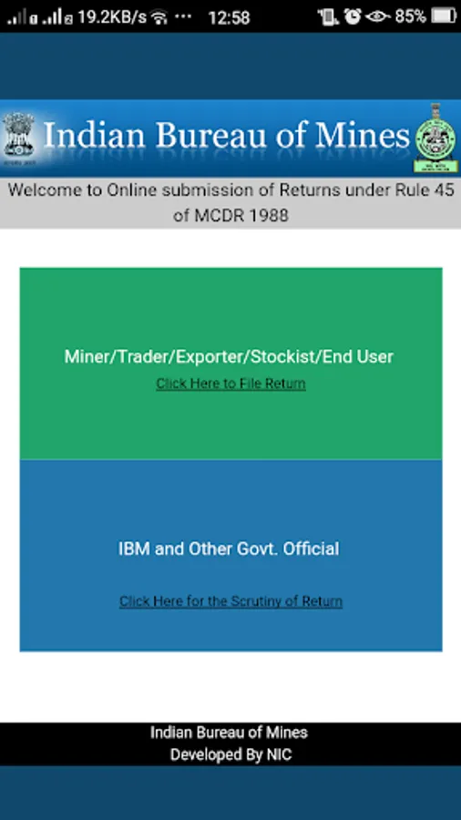 The app is an adaptation of the returns management software currently hosted under ibmreturns.gov.in. This application has been developed by NIC-SDTC, Nagpur for Indian Bureau of Mines, Nagpur.