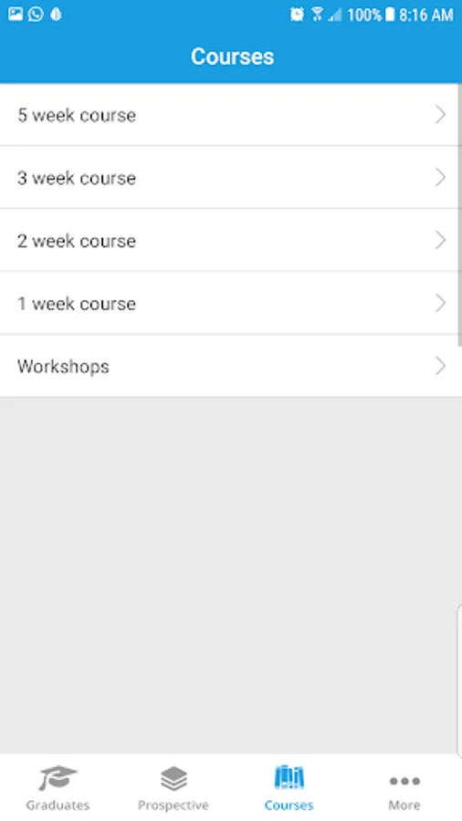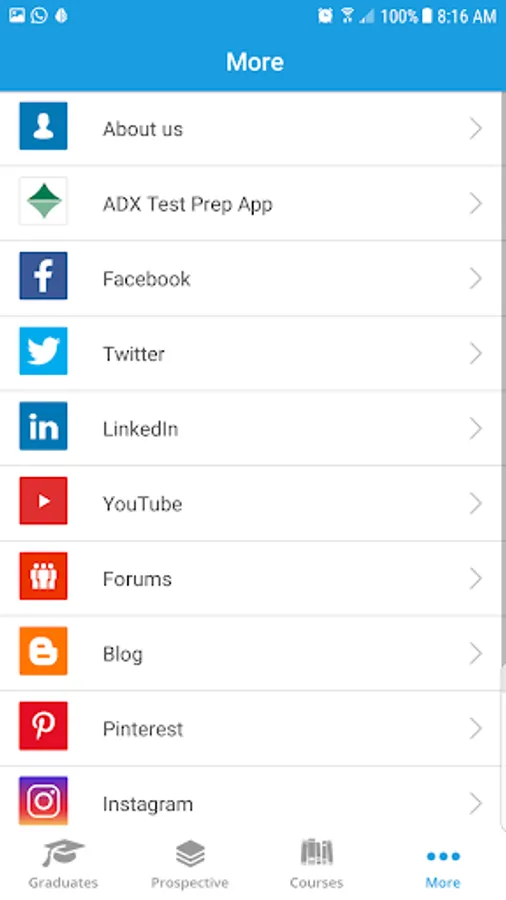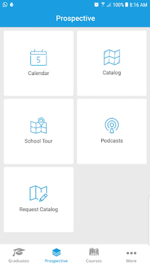 For prospective students, we provide quick app-internal or web access to our school calendar, catalog, school tour with slideshows, sample podcasts, including “mini-lessons.” Link to our course descriptions and online documents via Registration. And don’t overlook the “More” button which links you to a vast amount of information as well as direct links to our Facebook and Twitter accounts, which we also use to announce job openings to our students and graduates.