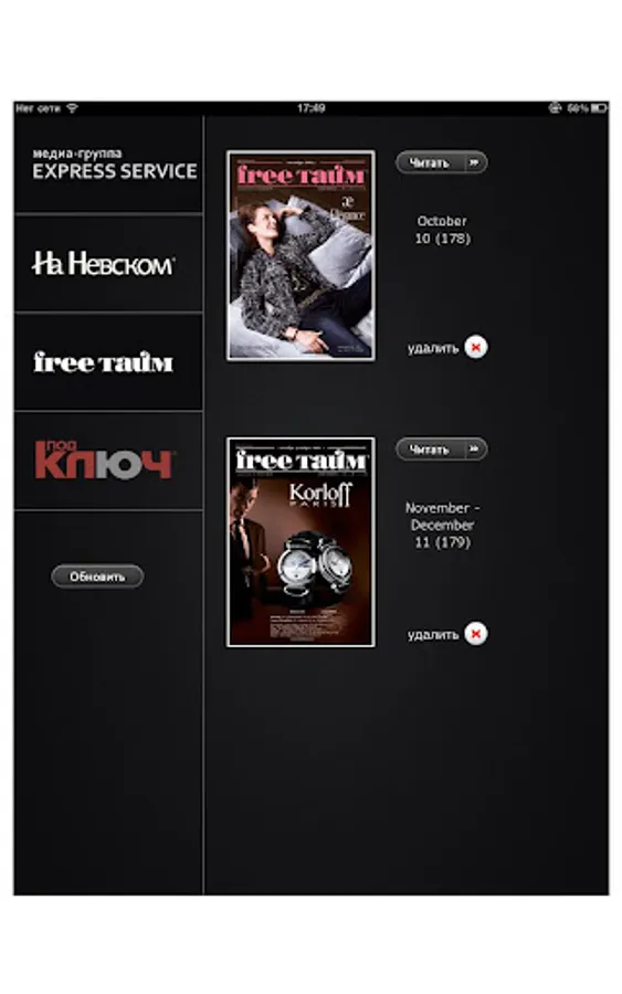 On this shelf the following magazines presented: "FreeTime", "Na Nevskom" and "Pod Kluch".
