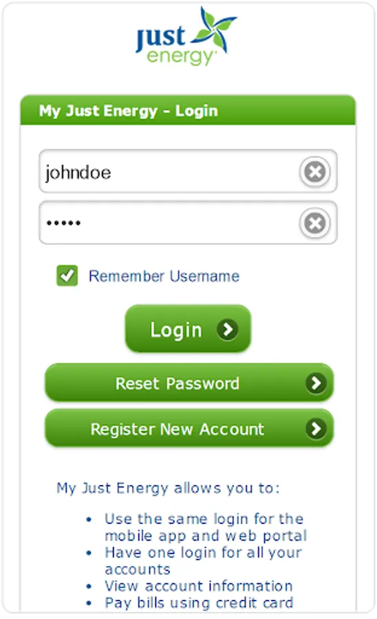Not registered with "My Just Energy"? No problem, the Just Energy app also allows you to register and provides the following features: