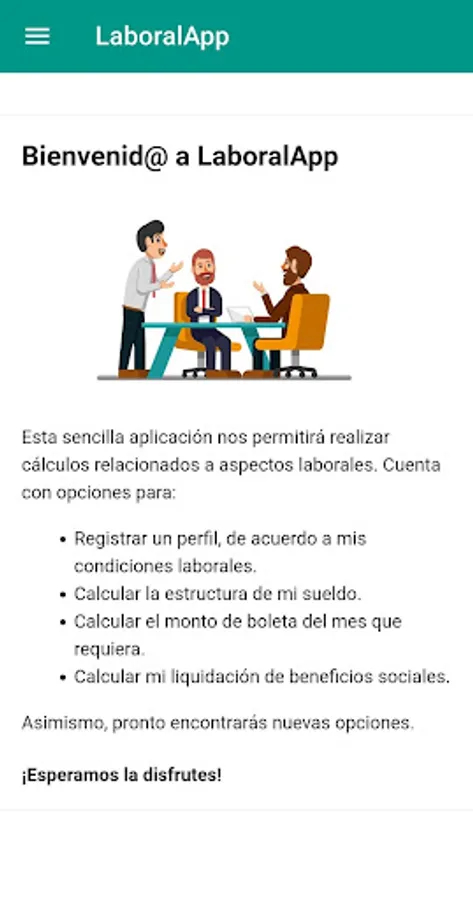 The application will allow us to perform calculations related to labor aspects, it has options for: