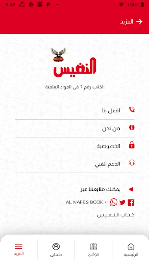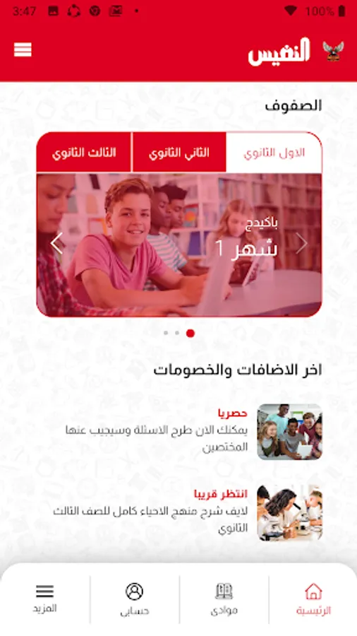 منصة نسور النفيس هي منصة التعليم الاون لاين من كتاب النفيس و هي عباره عن تطبيق متوفر على Google Play و App Store. هتلاقي فى نسور النفيس شروحات فيديو تفصيلية للمنهج بالكامل بطريقة عرض جديدة و ممتعه هتساعدك تفهم كل جزئية فى المنهج، و تدريب كامل على نظام الـ Open Book و أسئلة متدرجة الصعوبة، و اجابات لكل أسئلتك من المؤلف مباشرة.