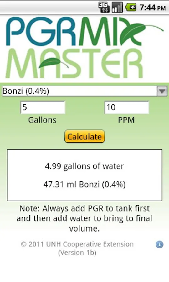 PGR Mix Master is a tool to assist commercial greenhouse personnel in calculating correct dilutions for plant growth regulators. The application was developed by the University of New Hampshire Cooperative Extension with financial support from Fine Americas, Inc.