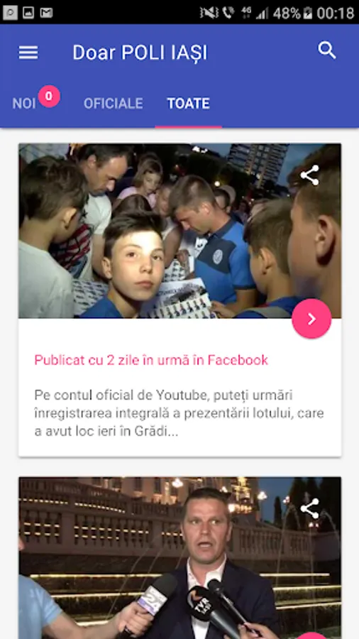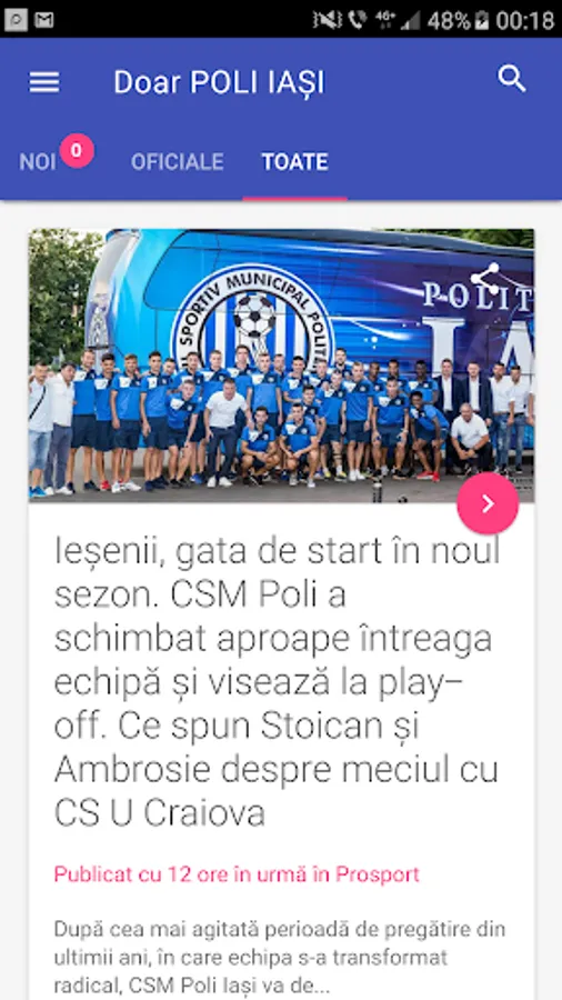 Application extract news from local sources (Ziarul de Iasi, Iasi Good Day, Sports Moldova), national (Prosport, Mediafax Ziare.com) and official (www.politehnicaiasi.ro official website, official Facebook page, official YouTube account) .