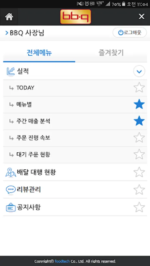 The'BBQ President' service is an app service that enables store POS management provided for all bosses who use the POS solution provided by Genesis BBQ. Instead of a store, you can check'Sales Performance Management', anytime, anywhere through the BBQ boss app.