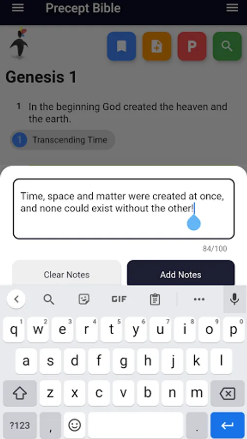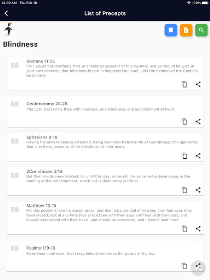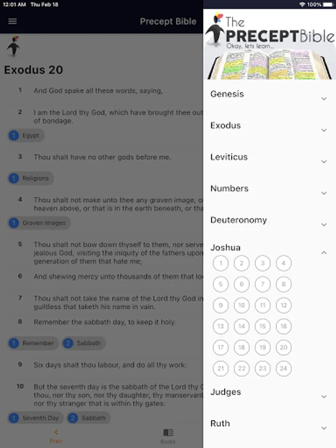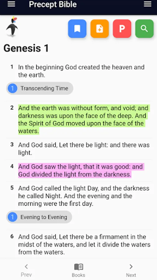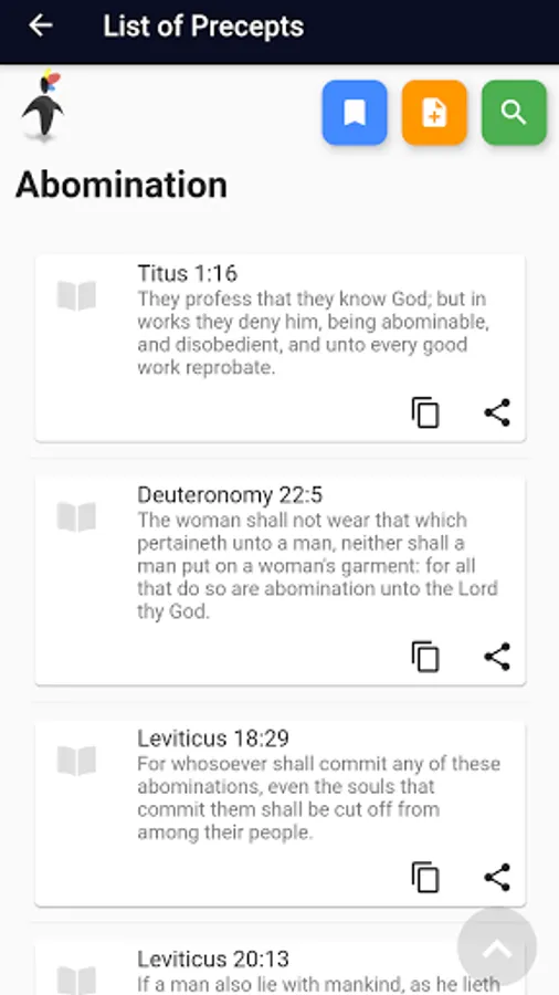 - Quickly check up on precepts listed under a verse, and link to cross-linked verses;