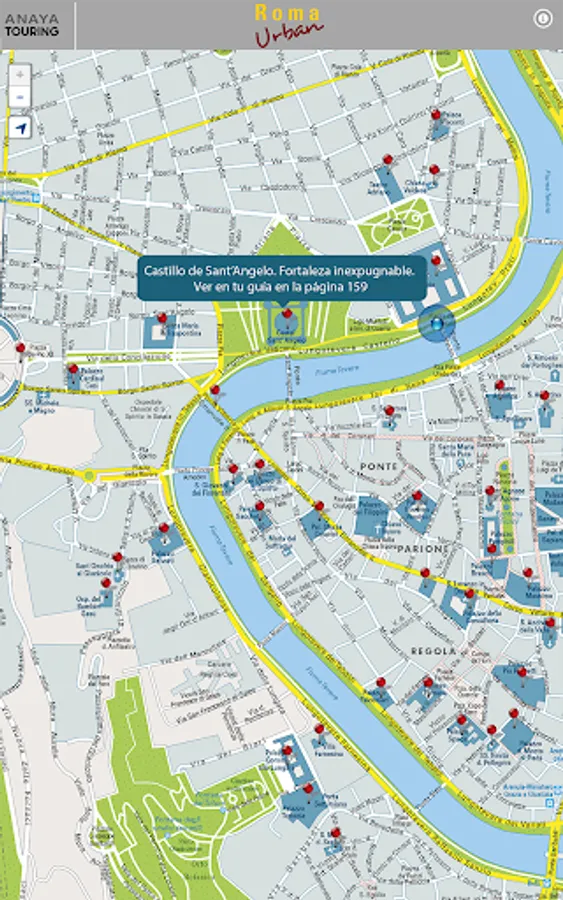 It consists of an offline plane where places of special interest, considered essential in a visit to Rome is located. The GPS will locate at all times showing you those points around you, without the need to have internet connection or pay fees to operators.