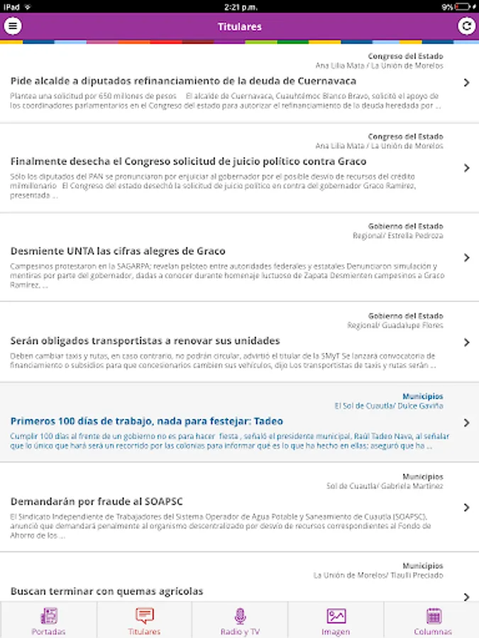 Daily and most important information they disseminate the mainstream media at the national and local levels in Morelos.