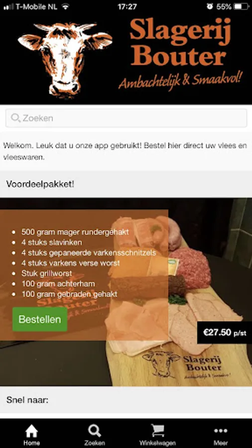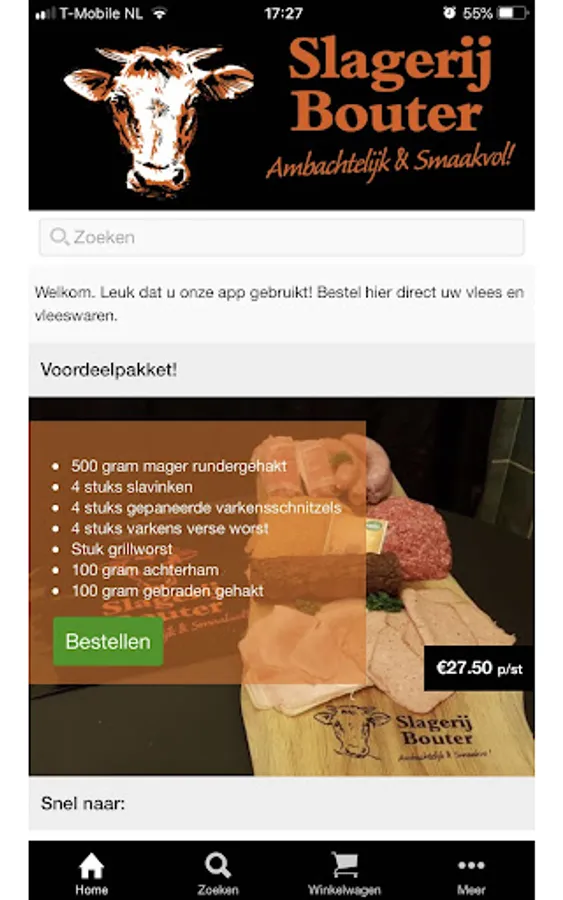 Now you can see the quality of Butcher Bouter also experience on your smartphone. View and order the products in the assortment of Butcher Bouter. Let your products home delivery or let them set up in the store in Hoornaar or Giessenburg.
