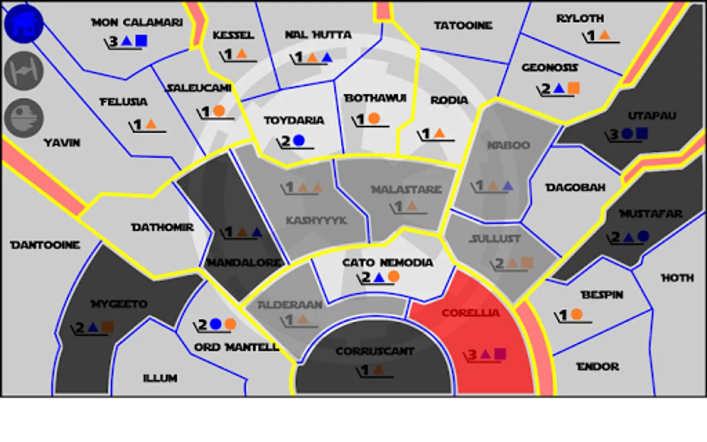 This program aids the game with the possible rebel base location (discarting systems with probe cards) and calculating the build queue in build phases for both sides.