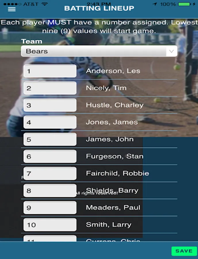 g. Create custom team roster and set batting lineup as often as you need.
