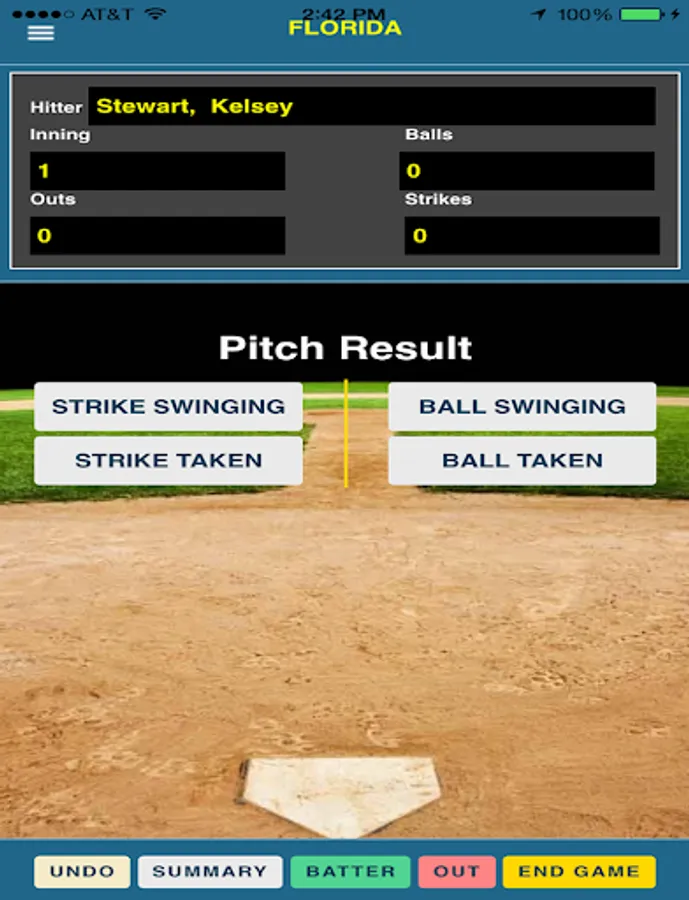 d. Game summary report provides every pitch outcome with one-click anytime during game play.