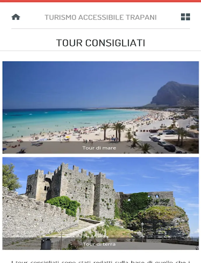 Multimedia guide aimed at promoting social tourism and enhancing the resources of the Trapani area with social and cultural activities for citizens and tourists with special needs.