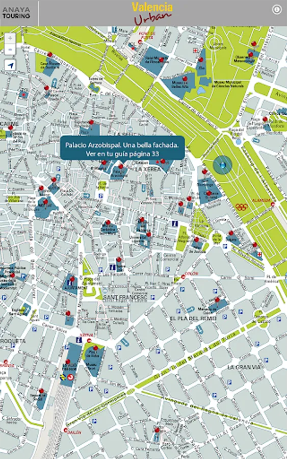 It consists of an offline plane where places of special interest, considered essential in a visit to Valencia is located. The GPS will locate at all times showing you those points around you, without the need to have internet connection or pay fees to operators.