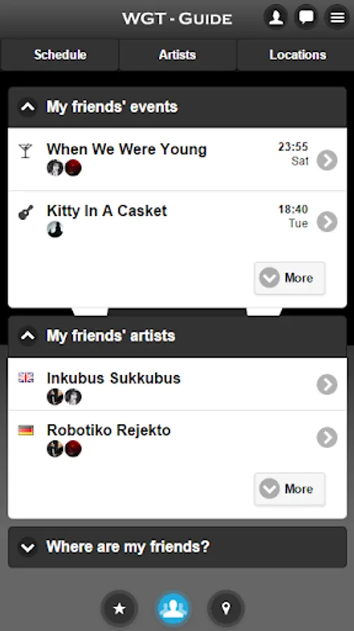 * The schedule is released shortly before festival start. The App updates it's data automatically via web service (no app update needed). Schedule data ist released only after it has been officially confirmed by the WGT.
