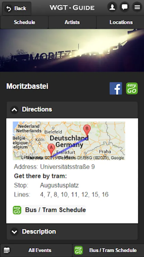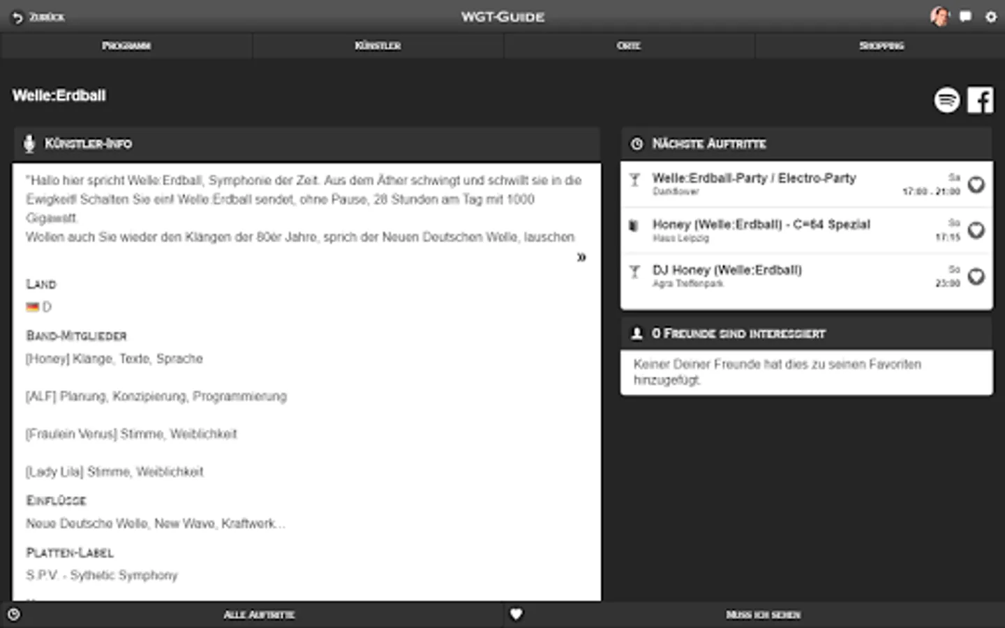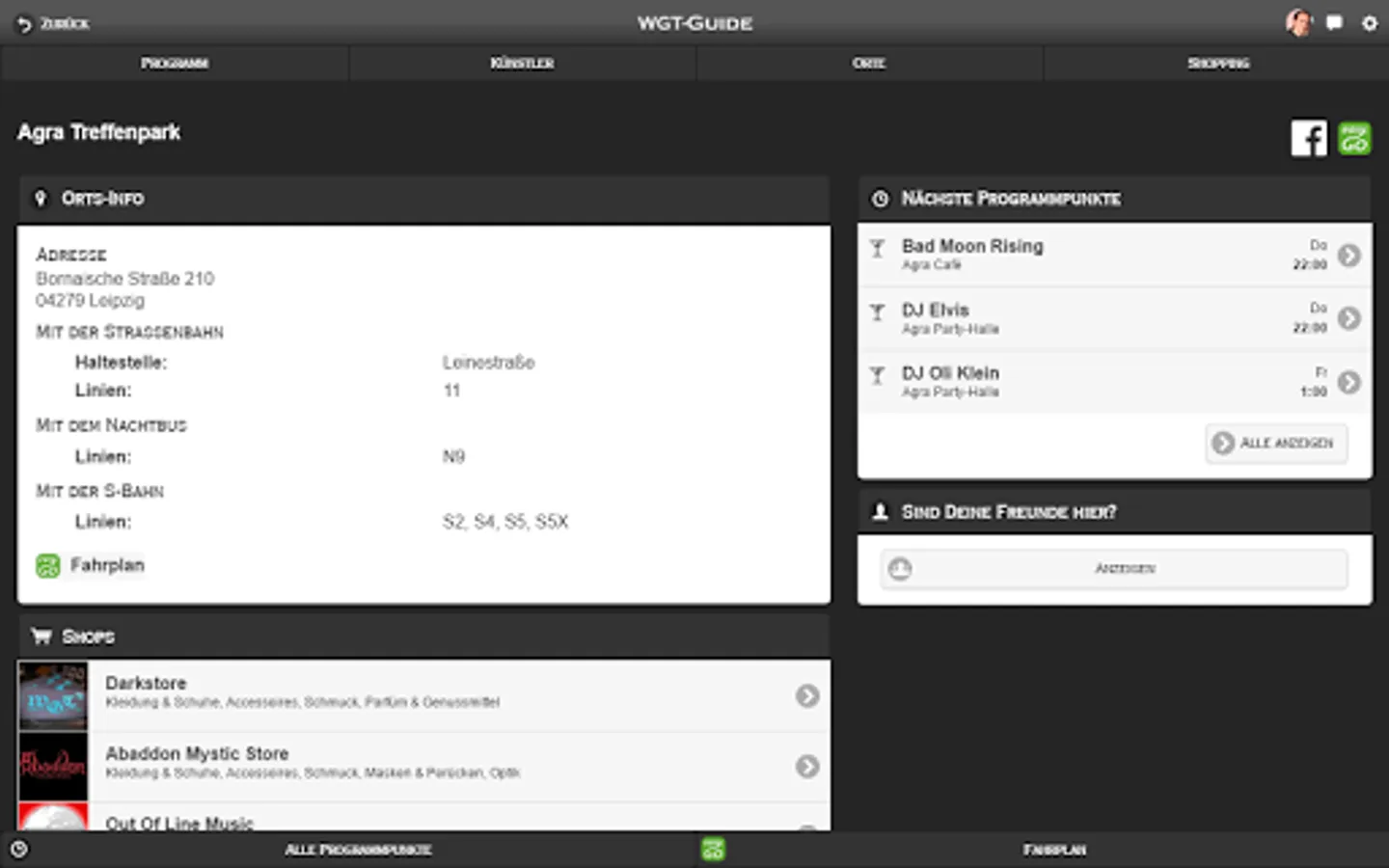 WGT-Guide is a mobile app developed for visitors of the annual Wave-Gotik-Treffen in Leipzig.