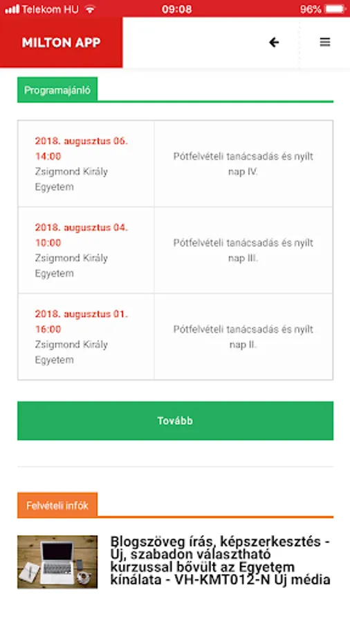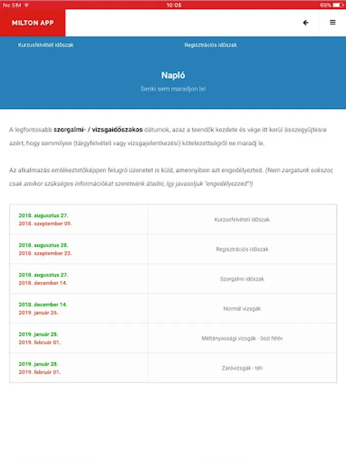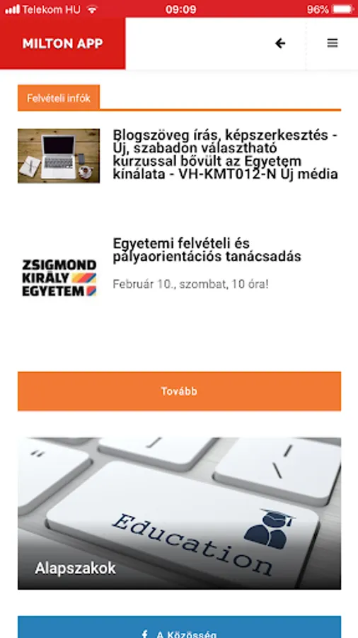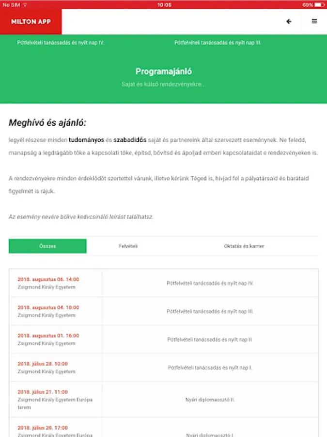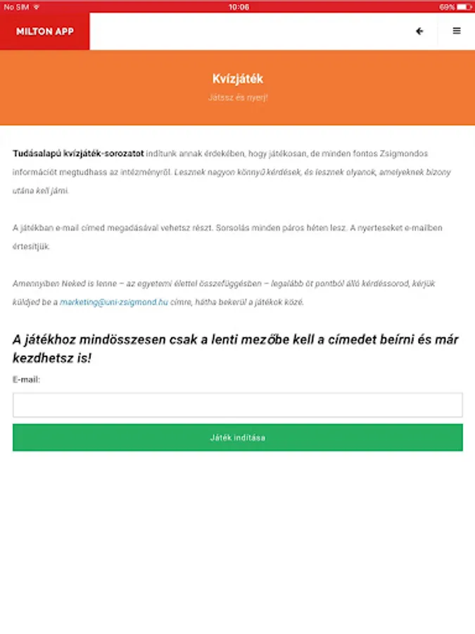 In addition to the previous functions, "Where can I find it? - Floor Plan ", from the" Administration "menu you can immediately access the official facili- tations for the study and of course there is a knowledge-based quiz game that you can use to build Milton's relics. The essence of the "Important Topics FAQ" is to keep you in touch with the most important information that is right for you.
