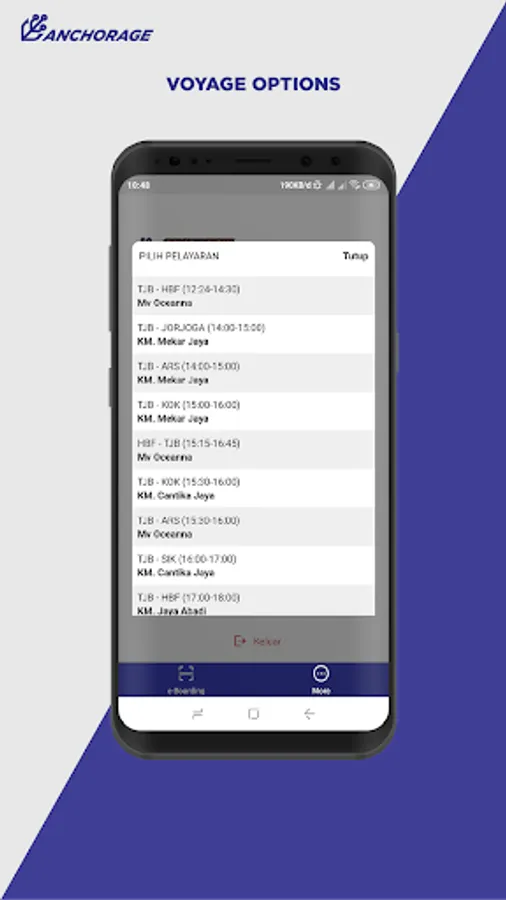 Dengan Anchorage - eBoarding App tata kelola penumpang untuk naik kapal laut jadi lebih praktis dan mudah. Pencatatan waktu naik kapal dan penghitungan jumlah penumpang dapat dilakukan dengan mudah hanya dengan sekali memindai QR Code yang dibawa oleh penumpang. Terintegrasi dengan Anchorage - Ticket Counter App, Anchorage - eBoarding App menjadi paduan sempurna untuk meningkatkan efisiensi pengelolaan penjualan tiket kapal.