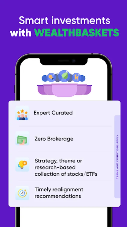 Product Range: Stocks, ETFs, WealthBaskets, Mutual Funds, and more