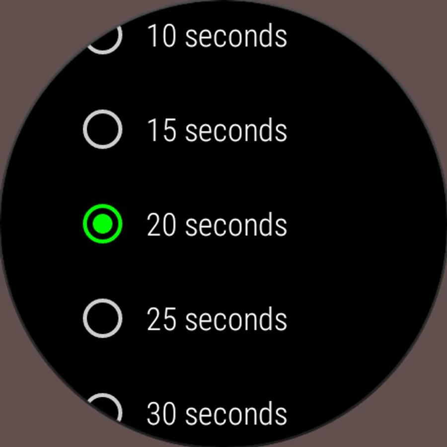 NOTE: Some watch models (e.g. Galaxy Watch 4/5/6) force the light to be switched off when you lower your arm or turn your wrist, independently of the value you set in StayLit.