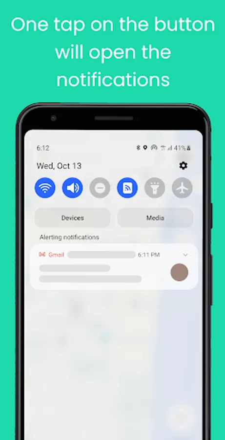 Tired of having to reach all the way up to the top of the screen each time a new message arrives? This app adds a new button to your phone's navigation bar - which will pull down the notifications for you. Just tap the button, and the notifications will be opened. Easy access from any app!