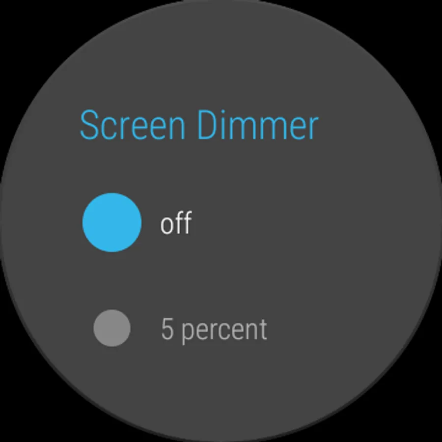 Do you find your watch's screen too bright, even at the lowest setting? Then Screen Dimmer is for you! The app allows you too set the brightness of your Wear OS watch to a lower level than you can achieve with the device settings, helping to prevent eyestrain.