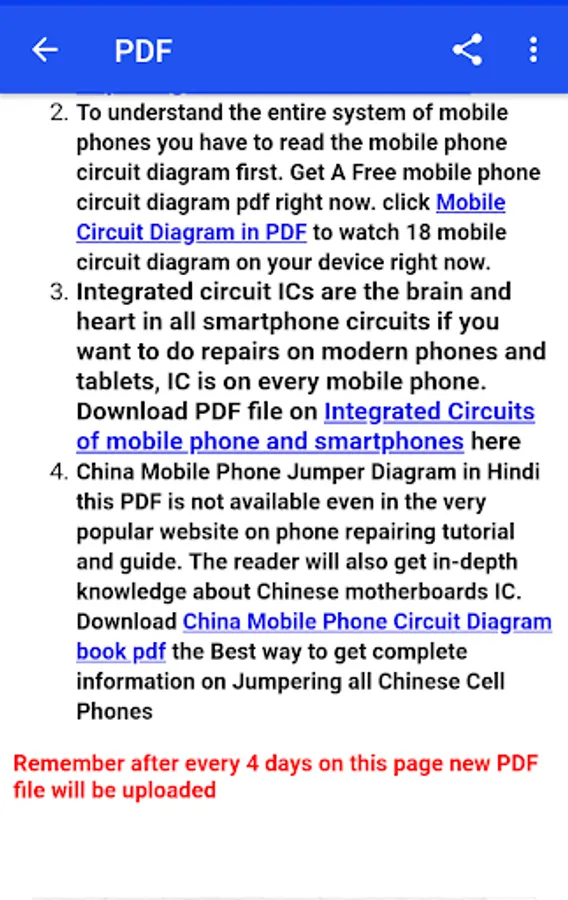 The App is providing step by step training with a mobile phone and smartphone circuit diagrams PDF, DOC, PPT, pics, notes & video tutorials