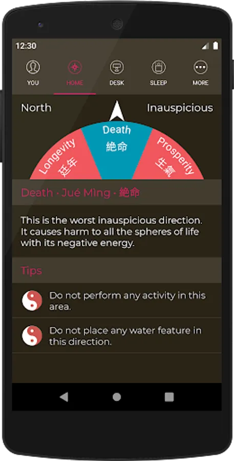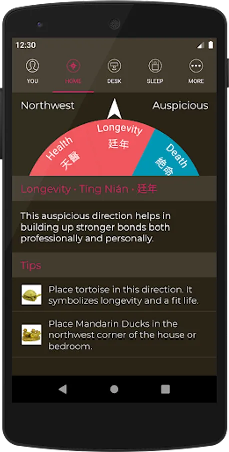 - Point to you where is auspicious or inauspicious place at your home, with some suggest to avoid bad energy and increment good energy.