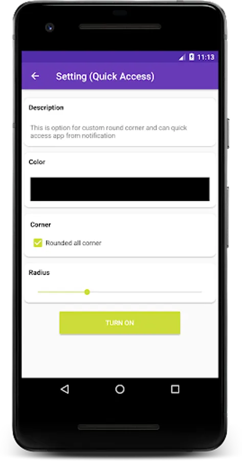 ✓ Custom curve of phone corner and quick access to application from notification bar.
