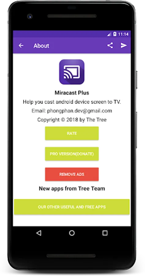 This is plus version of "Miracast Wifi Display" app, it will help you cast android device screen to TV screen by Wireless display device such as Smart TV or Wireless display adapters. Addtition, you can setting phone corner and quick access to application from notification bar by turn on it in setting. App run perfect on my devices, I tested on SamSung, HTC, Sony phone. Notice: some devices don't support cast screen and may be this app will don't working, app only support android from 4.2 and above.