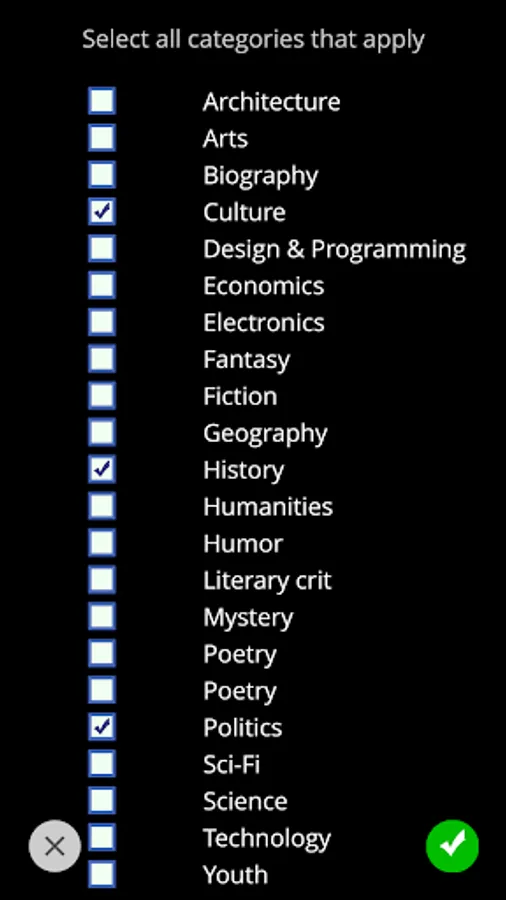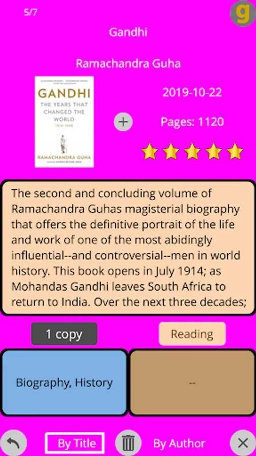 Allows you to build a database of your books by scanning in their ISBN barcode or typing it in. Each book is looked up on Goodreads or Google Books to get details. They you can add categories and notes.
