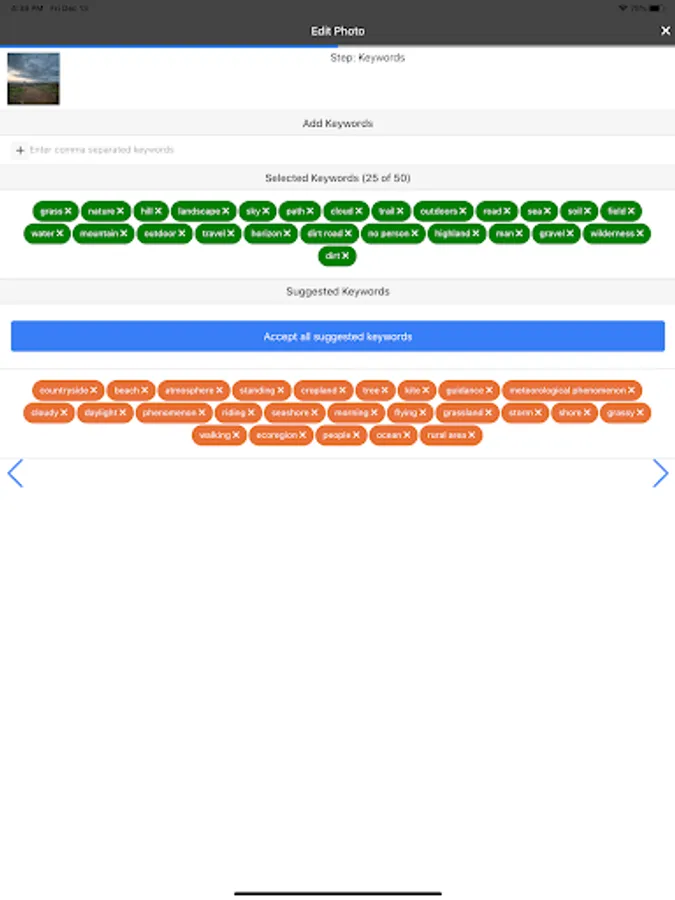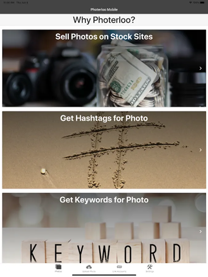Photerloo suggests keywords for your photos and shares to stock photography sites.Users use Photerloo to choose keywords and additional metadata, and can then select where to share their photos.