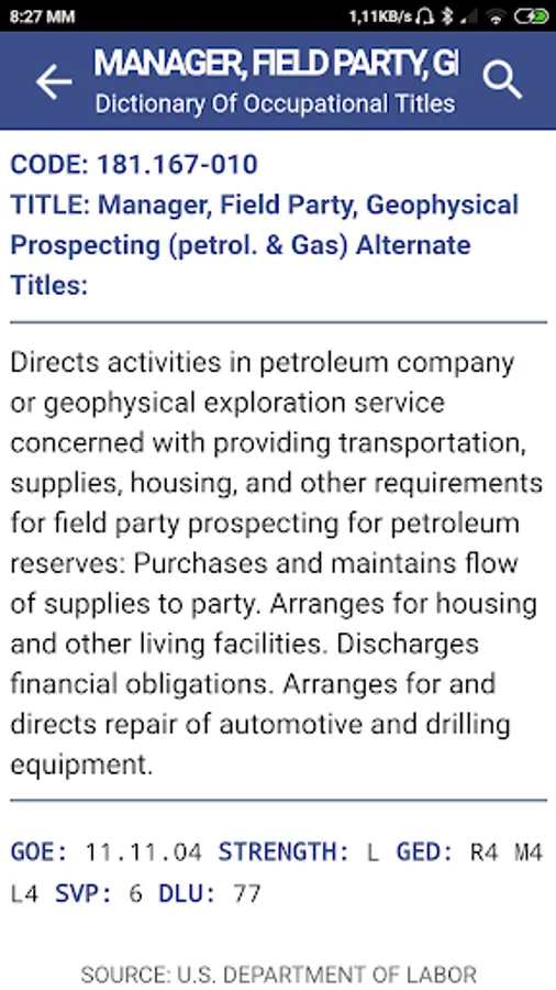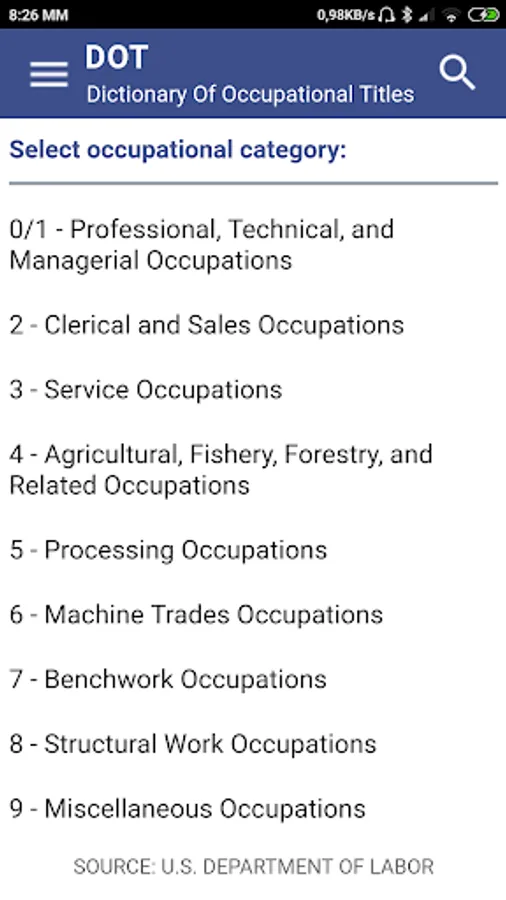 DOT for Android assists job seekers, employers, educational and training institutions, researchers and others by detailing tasks performed, educational requirements, and skills needed for more than 12,000 types of jobs.