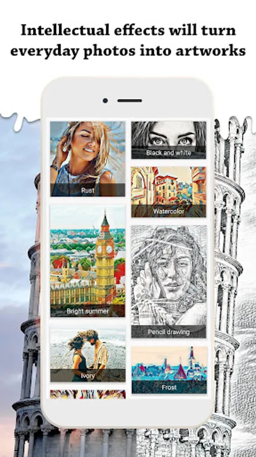 Our application has excellent filters for selfies and landscapes, the effect of pencil drawing, black white drawing, watercolors, stained glass, mosaic, cartoon effects and much more. Frequent updating of the filters, continuous training of the neural network for incredible effects on your photos. Share the unique artworks you created with hashtag #arti to the socia media.