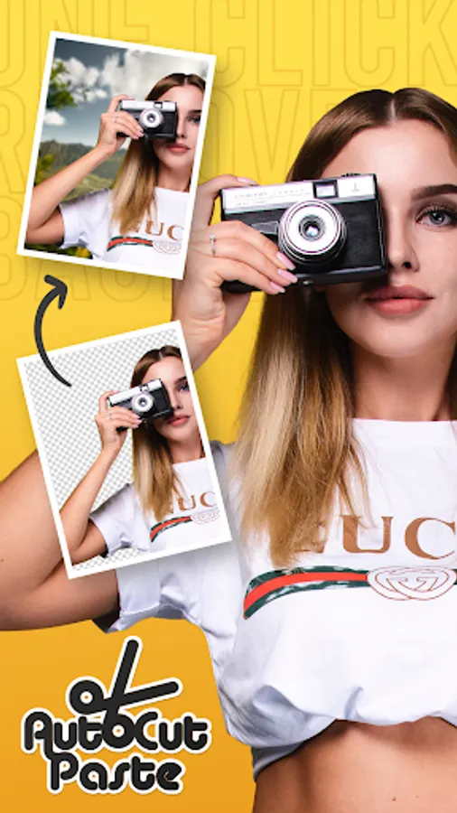 Auto cut paste. latest application to change background. Background Removal Erase photo background to transparent and add different beautiful backgrounds, edit it with so many options like stickers, text font, text shadow, text color, duplicate your cut out and more.