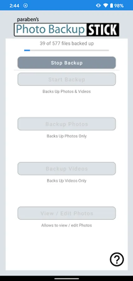 The Photo Backup Stick DC is the official backup app for the Photo Backup Stick direct connect USB OTG flash drives. This app allows you to back up pictures and videos directly to your Photo Backup Stick. Protect your memories from being lost forever from broken or lost or stolen phones. By backing up your photos and videos to the Photo Backup Stick, you can rest easy knowing you have a physical backup. Once backed up, you can transfer to your computer or simply store your Photo Backup Stick in a safe place. This app will only work with genuine Photo Backup Stick OTG drives.