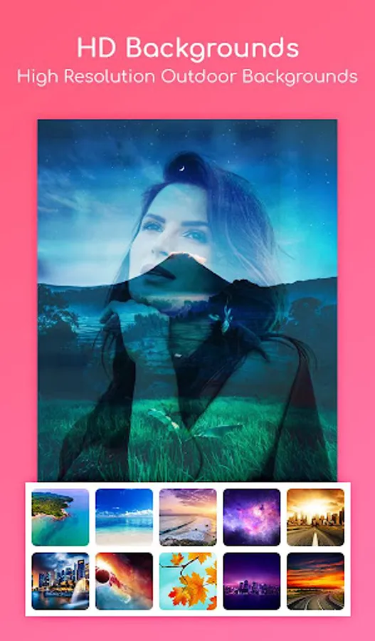 ⇨ Choose and set your favorite HD backgrounds to looks like outdoor photography and blend them with your pic.