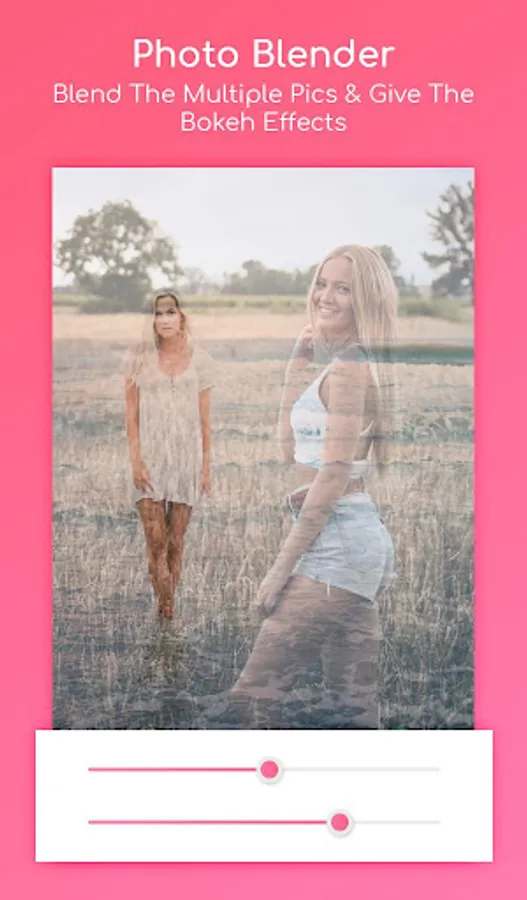 Photo Blender mixer and overlay image effects allows to select pictures from the gallery or take selfie from the blend camera. Then apply blend effects and image overlay effects on selected pics. You can also choose related hd backgrounds which suits on your blended photo. Application contains high resolution backgrounds, frames, overlays, stickers for free of download and use. Apps has features of photo blender mix-up using bokeh effect on pic and support multiple blend pics with no limit.