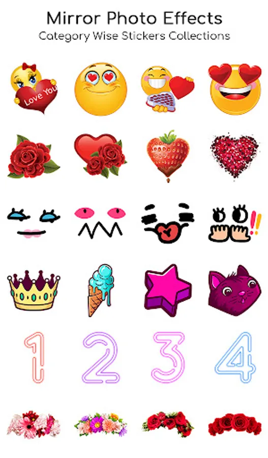 ⇨ New funny stickers are available to just drag drop on blended photo or mirror photo effects.